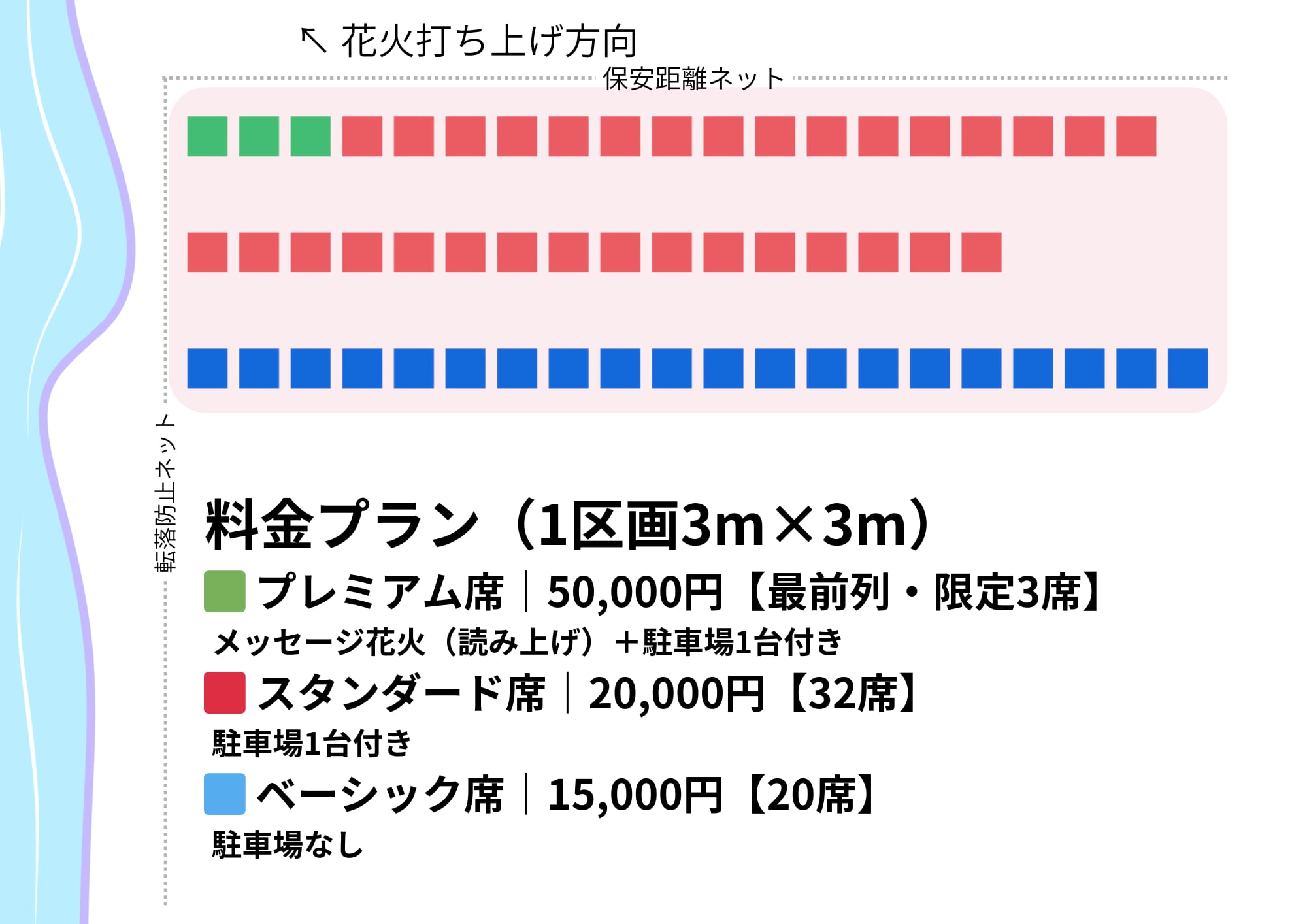 白竜湖花火 ベーシック席|1万5000円 駐車場なしプラン
